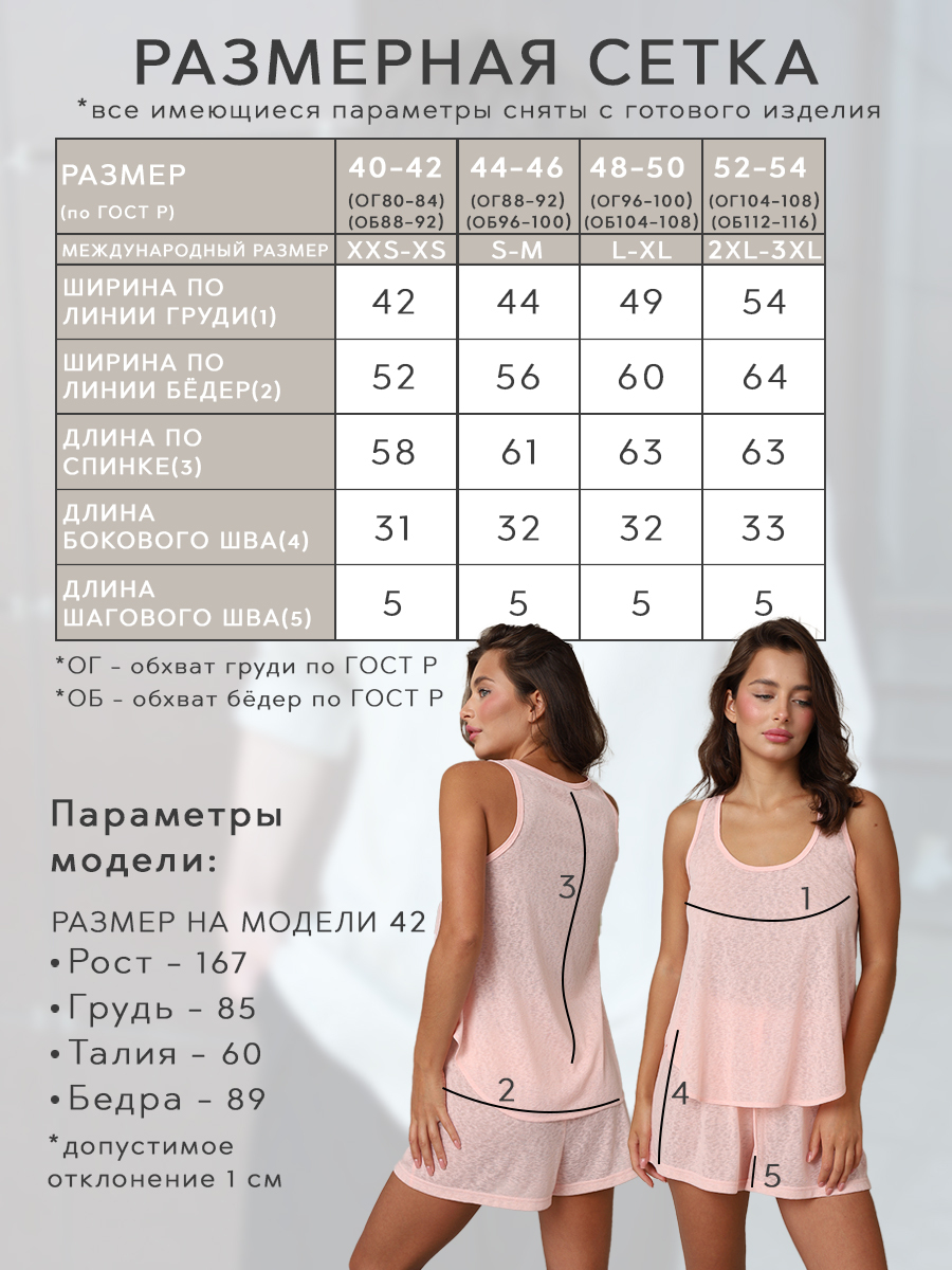 Идеальный набор для комфортного отдыха дома, прогулок в теплую погоду или расслабляющего сна. Комплект включает майку на бретелях и удобные шорты, выполненные из мягкой и дышащей ткани.