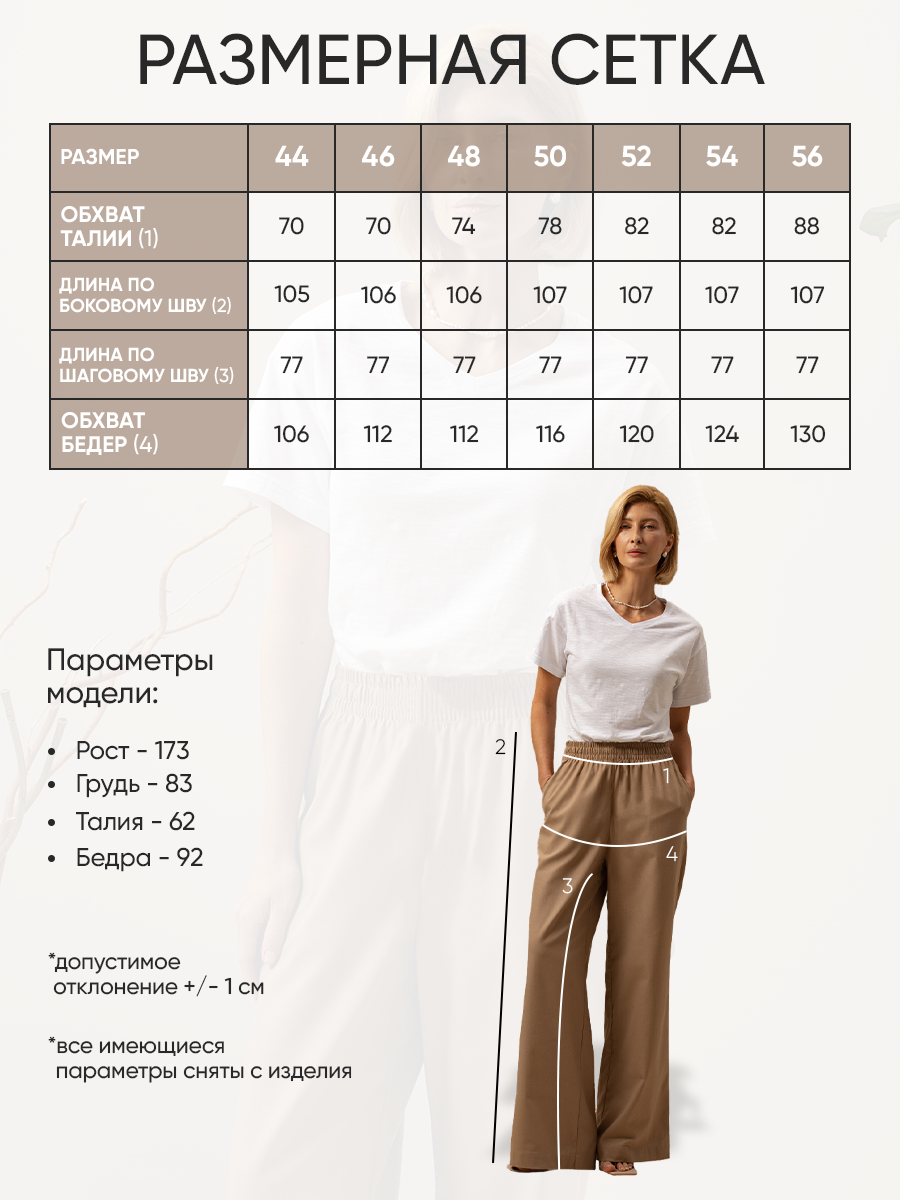 Позвольте себе помечтать в этих невероятно комфортных и стильных брюках "Фантазия" от бренда MODAMICA. Модель выполнена из уникальной смесовой ткани, которая сочетает в себе лучшие свойства натуральных и современных материалов: 40% полиэстер для долговечности и сохранения формы, 30% вискоза для мягкости и изящного драпирования, 20% лен для природной воздухопроницаемости и текстуры, и 10% хлопок для дополнительного комфорта. Такой состав гарантирует, что брюки будут идеально сидеть по фигуре, не мнутся в течение дня и дарят приятные тактильные ощущения. Универсальный фасон и благородный крой делают их идеальным выбором для создания как повседневных образов с простой футболкой, так и более элегантных луков с блузкой или пиджаком. Позвольте вашемy стилю парить с брюками "Фантазия" — где каждый день наполнен вдохновением и удобством.